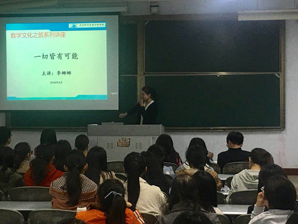 数学是一种理性精神,数学是自然科学的基础,数学是人类思考中最高的成就。为了让更多的学生理解数学、喜欢数学、走进数学,2018年4月12日,数学学院数学文化之旅系列讲座正式开讲,首场报告由李娜娜老师主讲,题目是《一切皆有可能》。